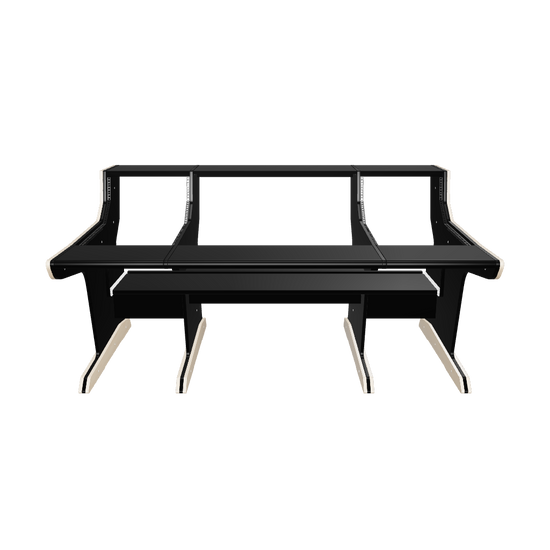 Following the classic lines of the console, our workstation for the API 1608 gives you 2x16U rack space on both sides of the console. The wide top shelf adds space for monitors and screens. The desktop gives you room for tabletop devices and a mouse and keyboard.