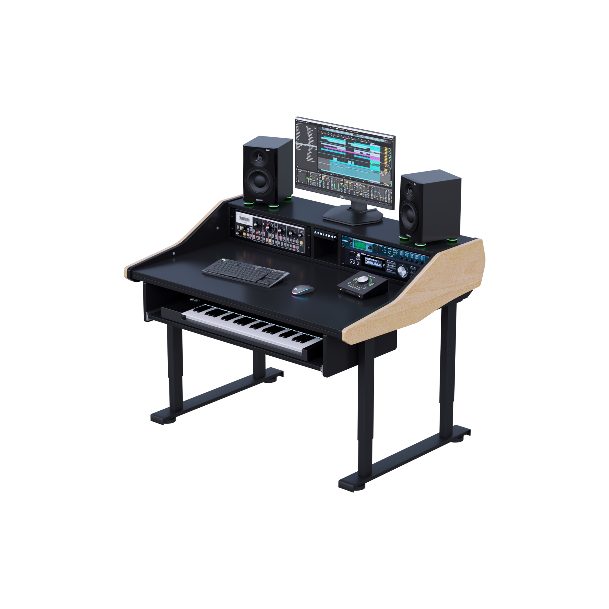 With the heavy-duty rails I was finally able to integrate an 88 full weighted keyboard into my studio.