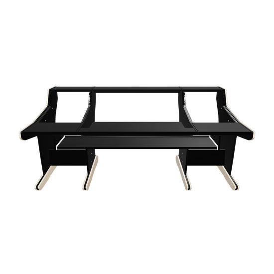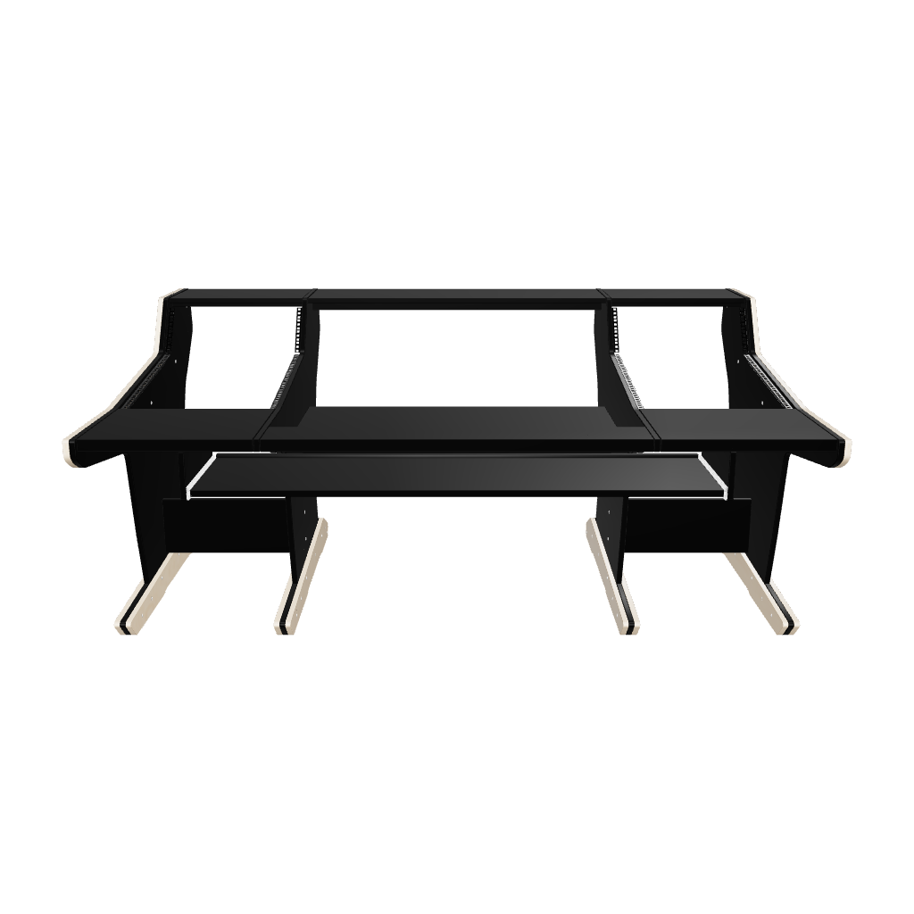Following the classic lines of the console, our workstation for the Audient ASP4816 gives you 2x17U rack space on both sides of the console. The wide top shelf adds space for monitors and screens. The desktop gives you room for tabletop devices and a mouse and keyboard.