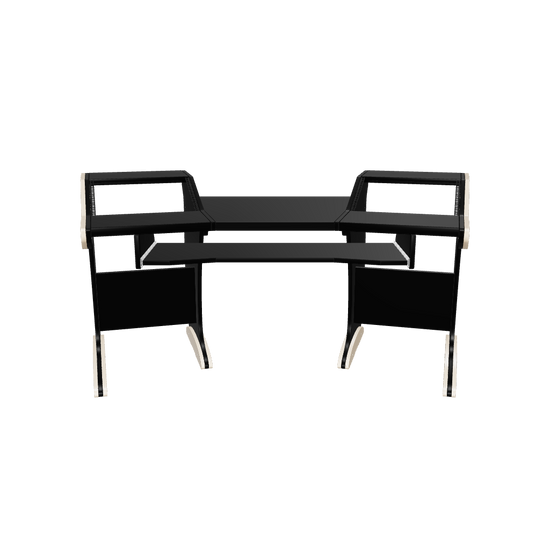 Take advantage of the split-level desktop and install the rear half of the desktop recessed at different heights, at an angle, or flat. This is perfect for a variety of tabletop devices and DAW controllers.